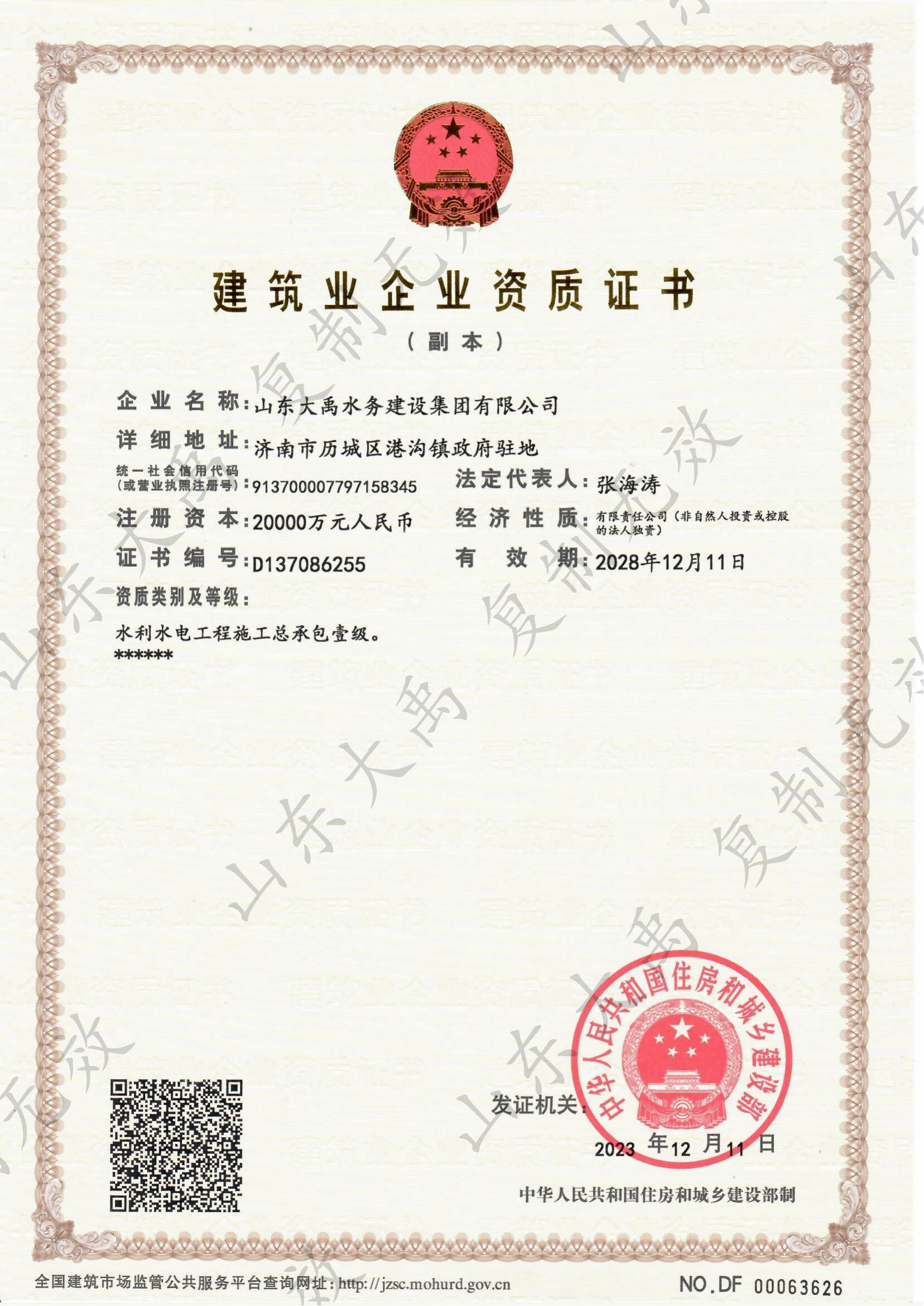 水利一級資質(zhì)證書