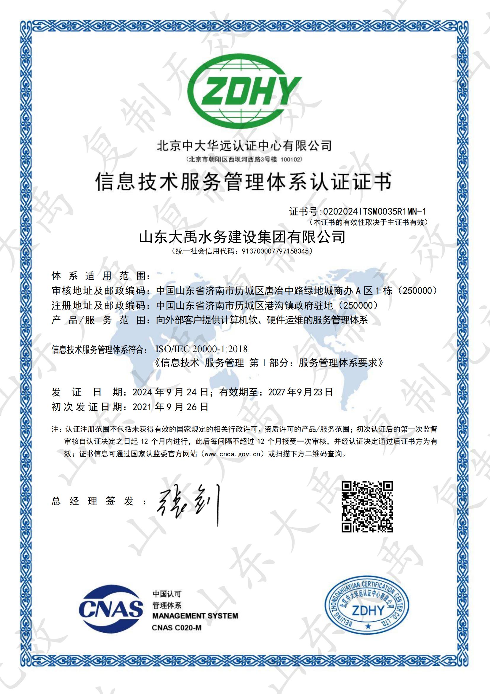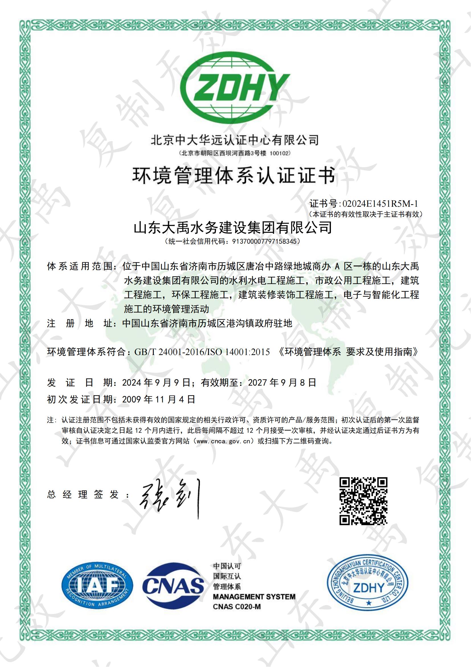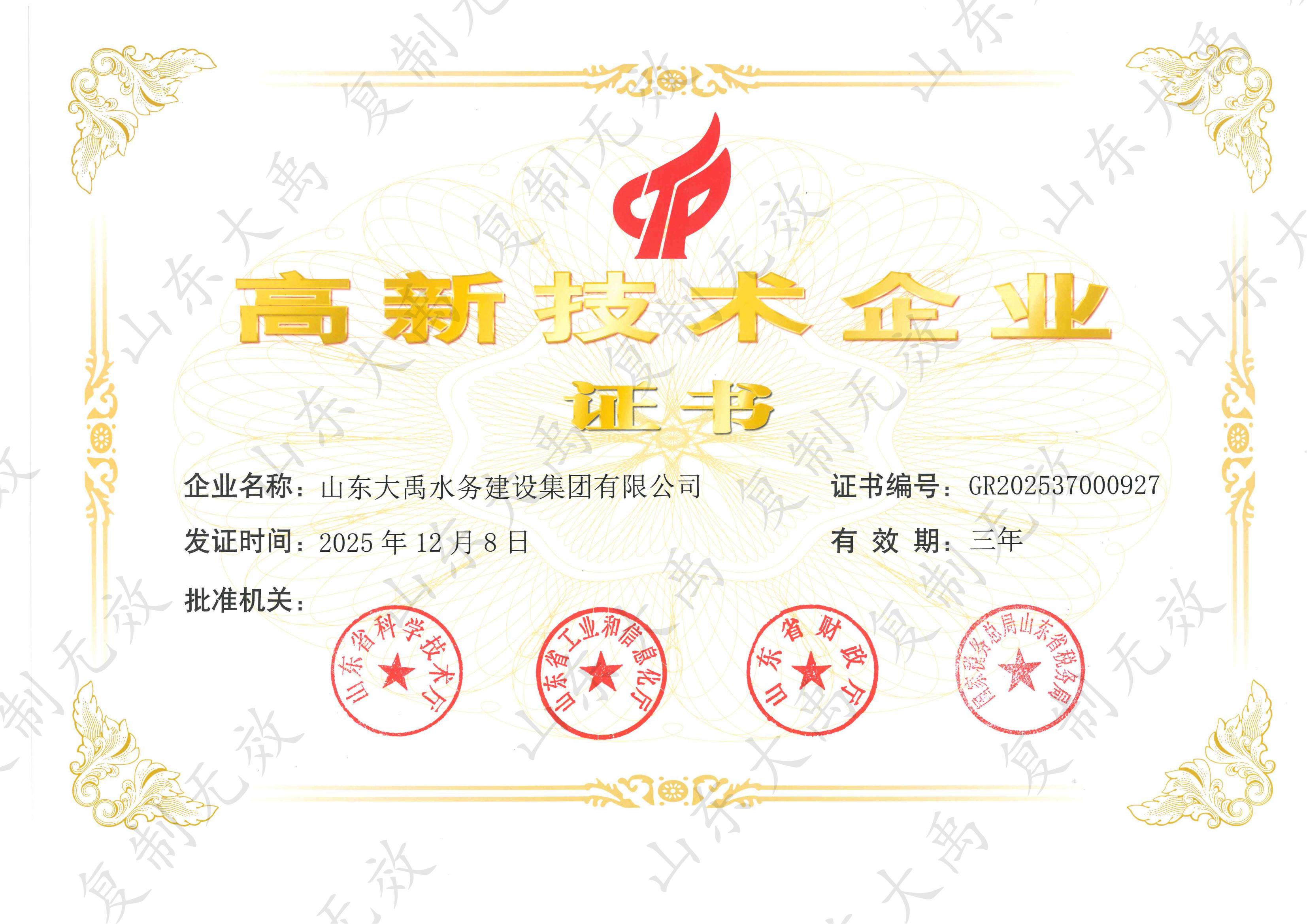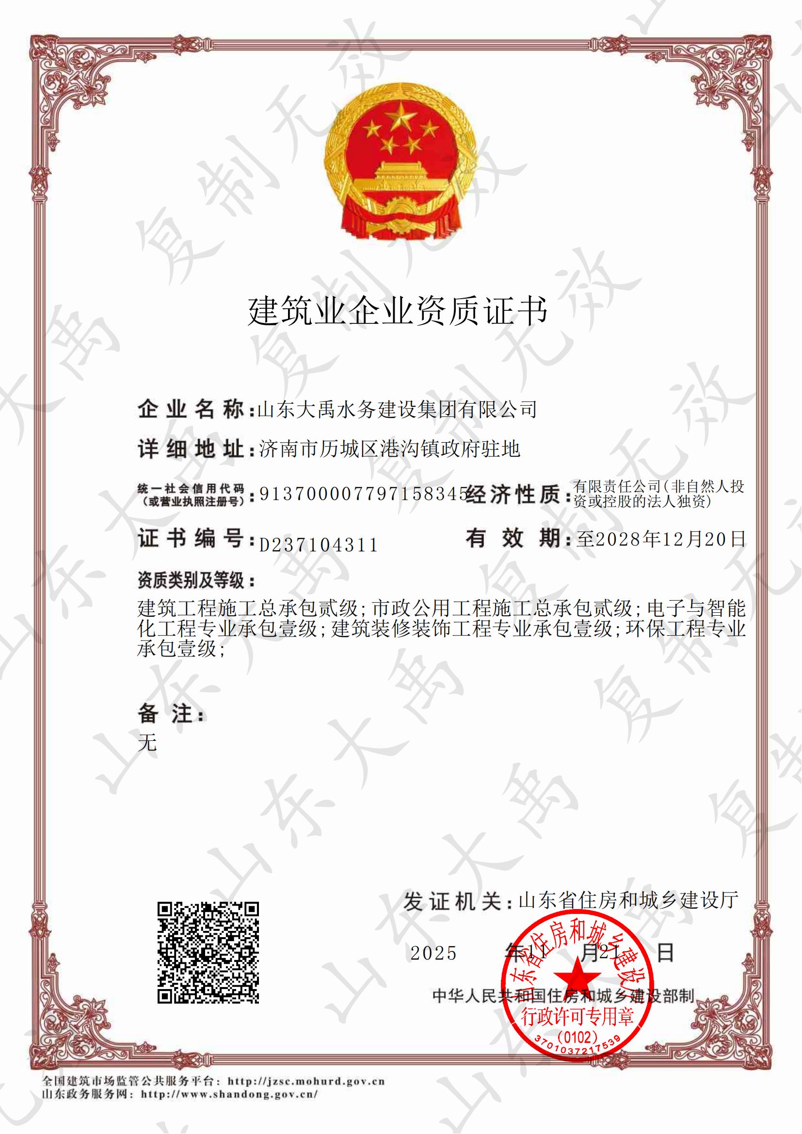 山東大禹水務(wù)建設(shè)集團(tuán)有限公司