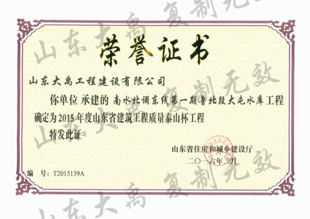 山東省建筑工程質(zhì)量“泰山杯”