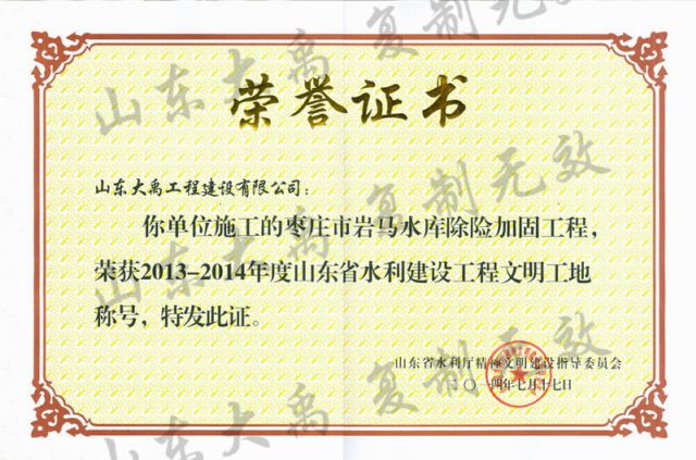 山東省“魯水杯”優(yōu)質(zhì)水利工程