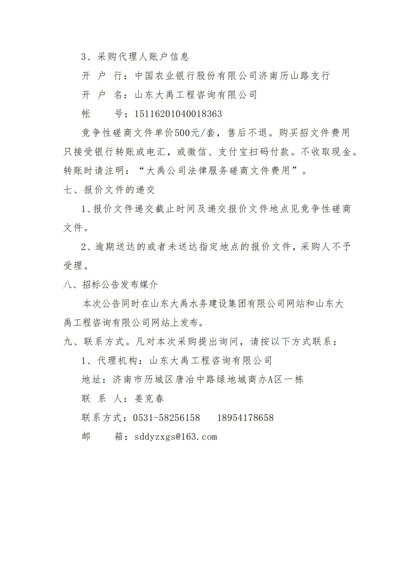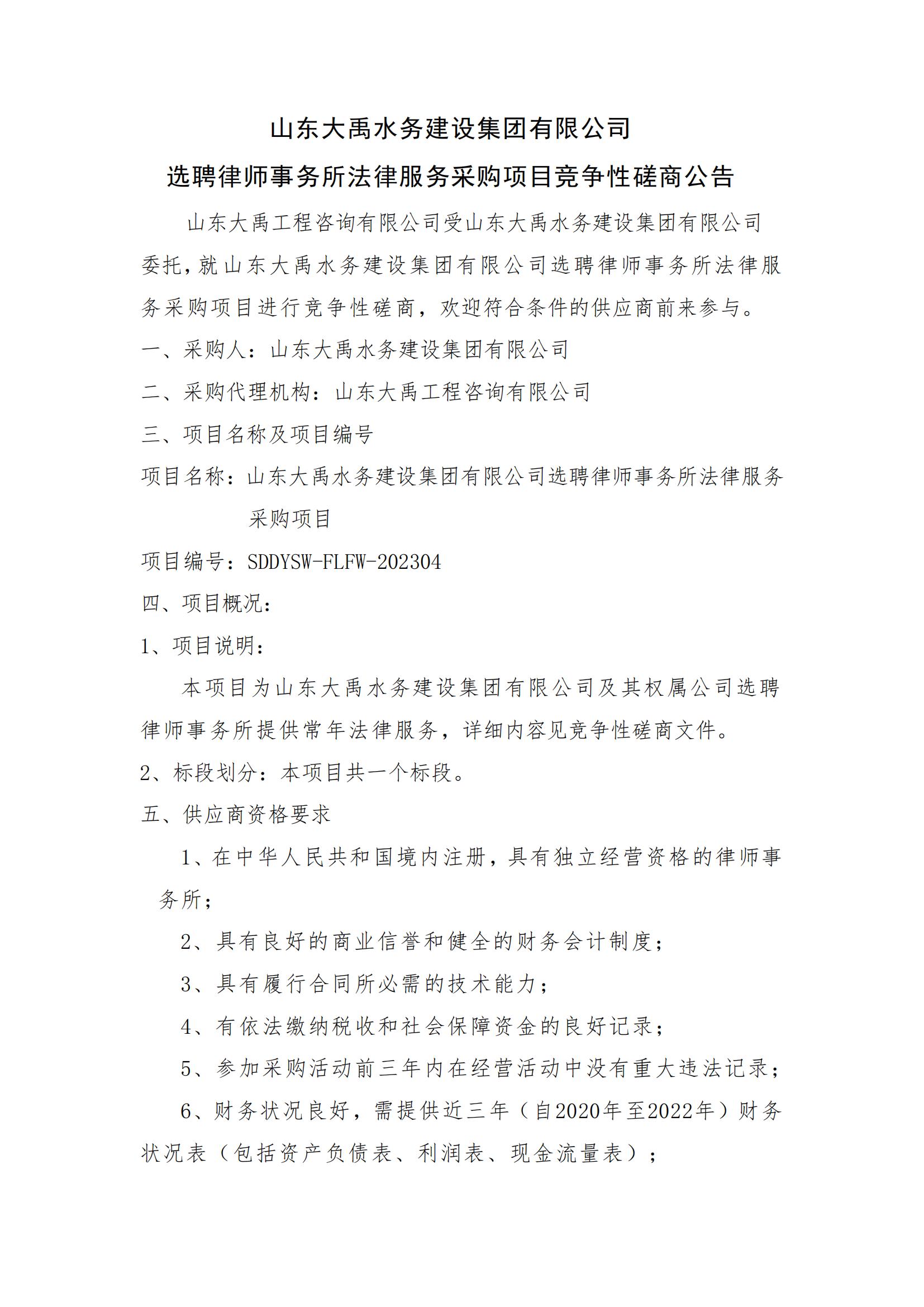 山東大禹水務(wù)建設(shè)集團(tuán)有限公司選聘律師事務(wù)所法律服務(wù)采購項目競爭性磋商公告