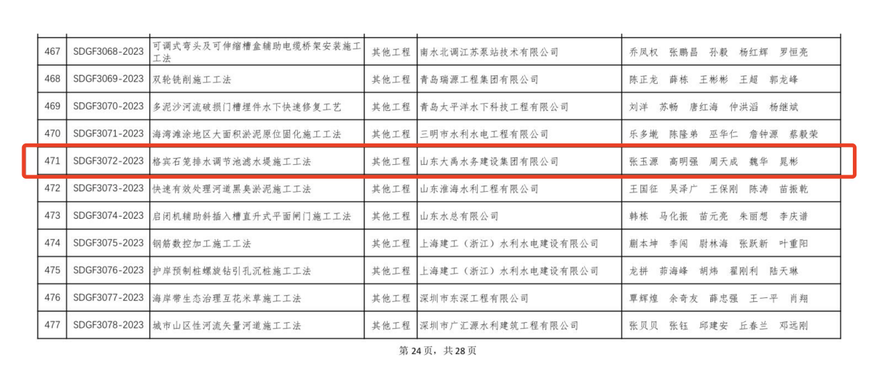 近日,集團公司申報的《復雜強風巖層入巖高壓旋噴樁施工工法》《復雜曲面現(xiàn)澆扶壁式擋土墻施工工法》《復雜軟土PE管道拉管穿越河道施工工法》《格賓石籠排水調節(jié)池濾水堤施工工法》等四項工法獲評中國水利工程協(xié)會“2023年度水利行業(yè)工法”。