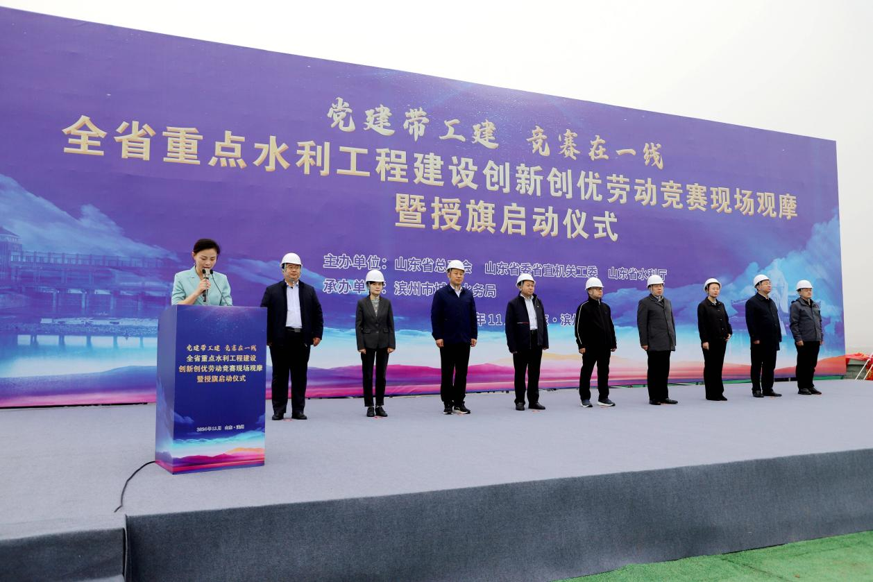11月14日,全省重點(diǎn)水利工程建設(shè)創(chuàng)新創(chuàng)優(yōu)勞動競賽現(xiàn)場觀摩暨授旗啟動儀式在集團(tuán)公司承建的利民水庫項(xiàng)目舉行。省水利廳總工程師周黎明,省農(nóng)林水工會主席張新國,省水利廳建設(shè)處處長張杰,省水利廳監(jiān)督處處長閆斌,省建安中心主任尚琎,省水利廳機(jī)關(guān)黨委三級調(diào)研員劉玉國,濱州市城鄉(xiāng)水務(wù)局黨組書記、局長潘清軍,省水利廳建設(shè)處副處長徐勝,惠民縣委副書記、縣長許健出席啟動儀式。集團(tuán)公司總經(jīng)理張玉源、副總經(jīng)理李國強(qiáng)作為獲獎單位代表參加活動。