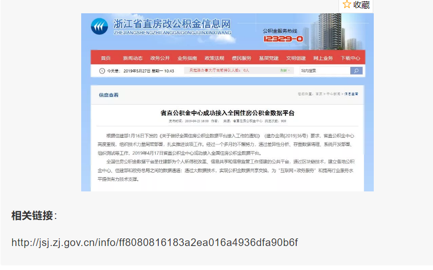 4月17日,浙江省直房改公積金信息網(wǎng)發(fā)布《省直公積金中心成功接入全國住房公積金數(shù)據(jù)平臺》的通知。