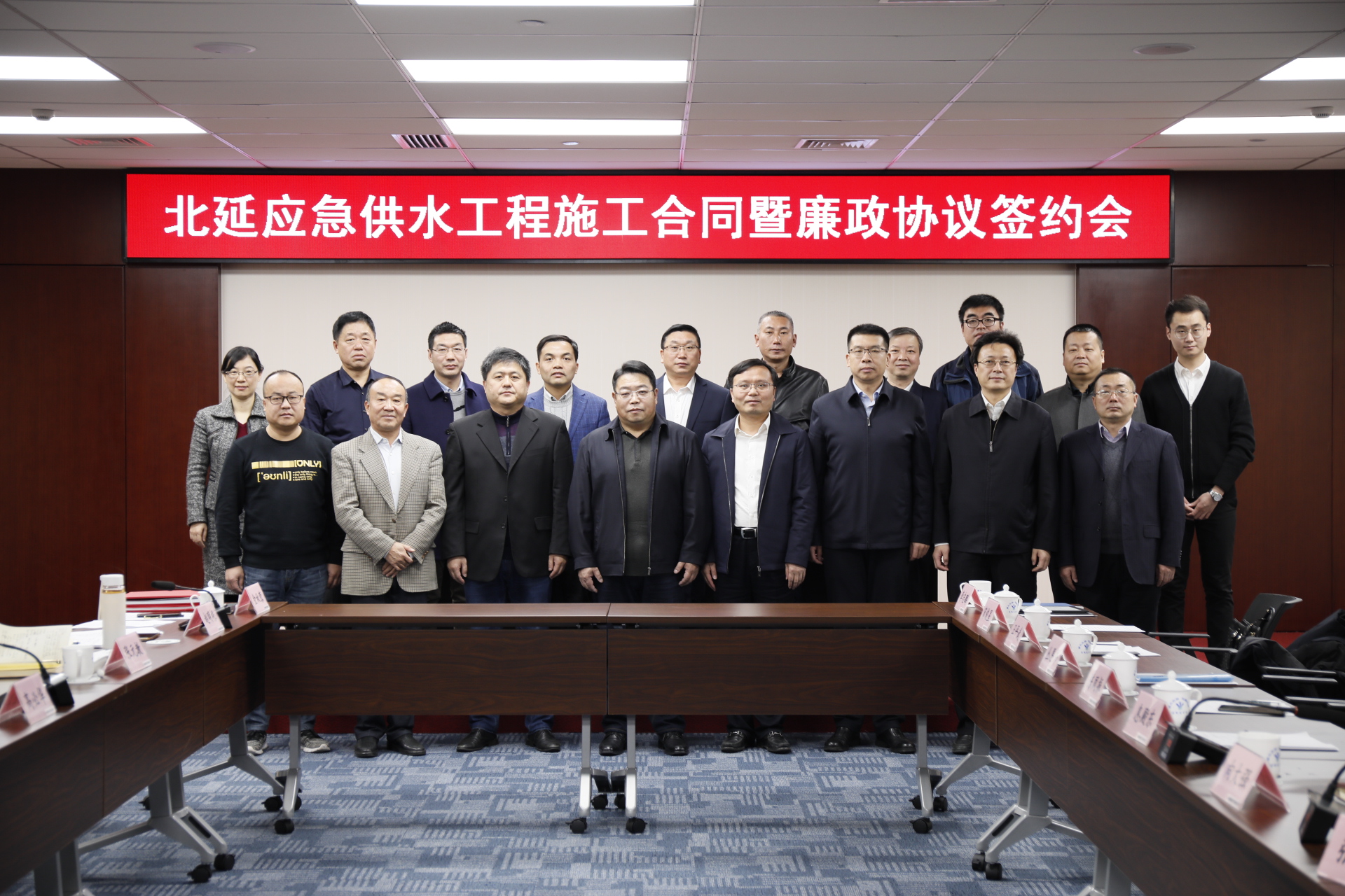 2019年12月13日,南水北調(diào)東線一期工程北延應(yīng)急供水工程施工合同暨廉政協(xié)議簽約儀式在北京舉行。南水北調(diào)東線總公司趙登峰總經(jīng)理、高必華副總經(jīng)理、集團(tuán)公司張海濤董事長(zhǎng)、陳鳳振副總經(jīng)理出席簽約儀式。