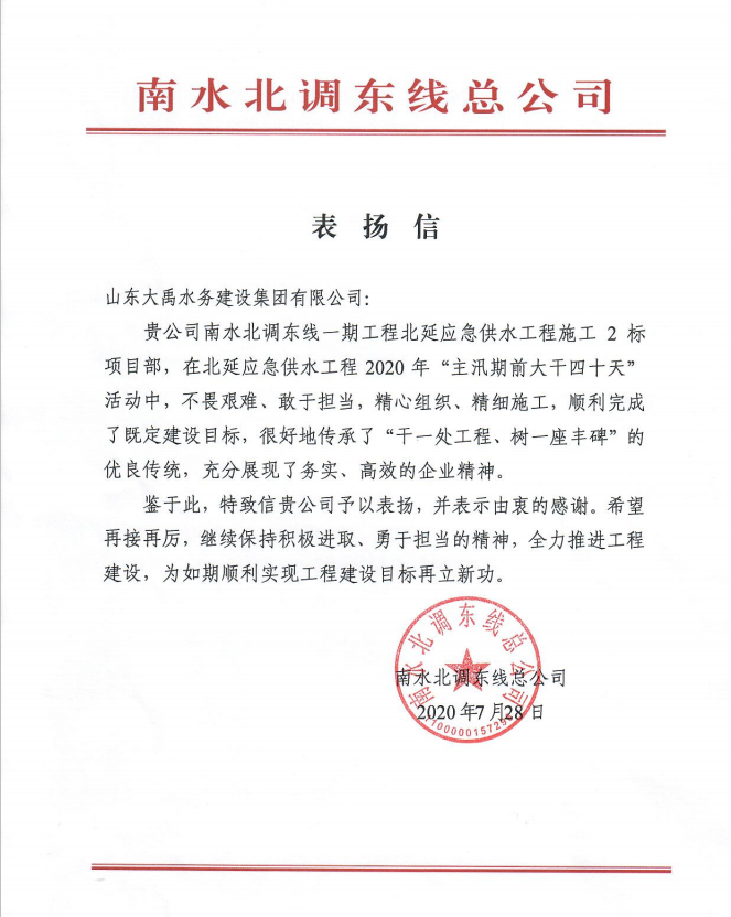 近日,由南水北調(diào)東線總公司發(fā)起的北延應(yīng)急供水工程2020年“主汛期前大干40天”活動圓滿結(jié)束,建設(shè)目標順利完成。