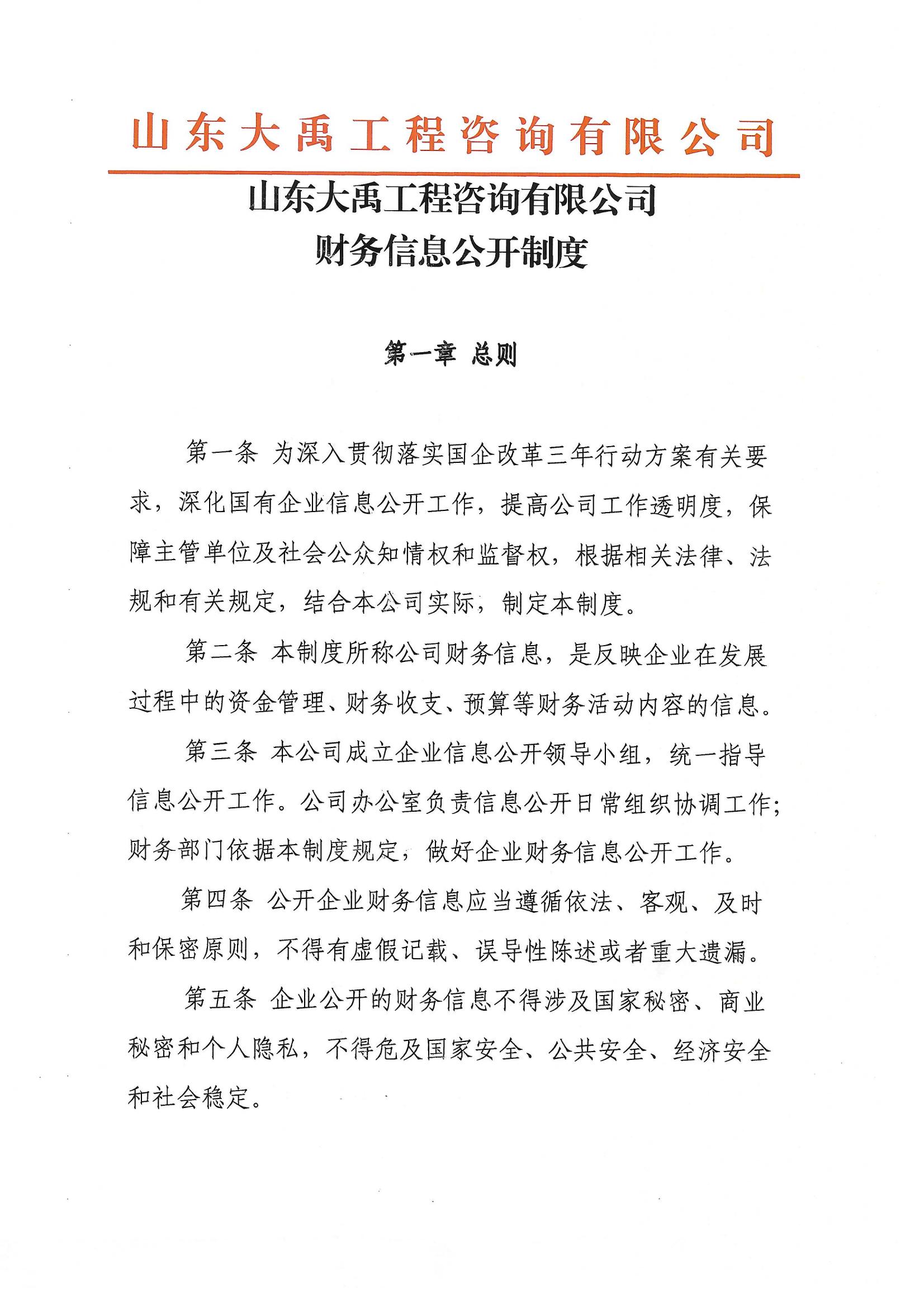 山東大禹水務(wù)建設(shè)集團(tuán)有限公司財(cái)務(wù)信息公開制度