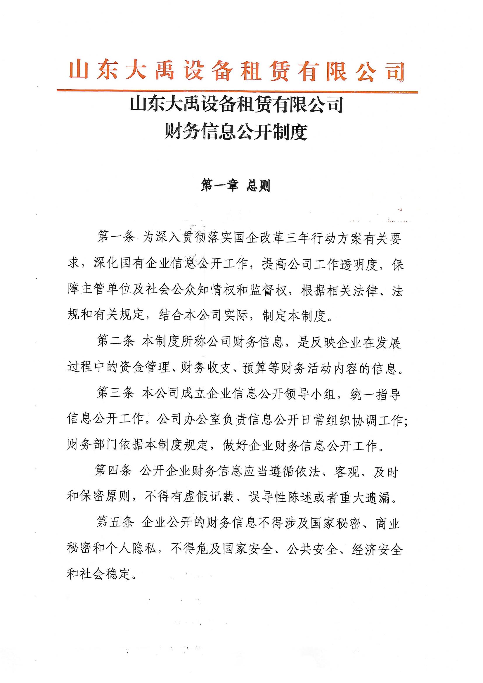 山東大禹設(shè)備租賃有限公司財(cái)務(wù)信息公開制度